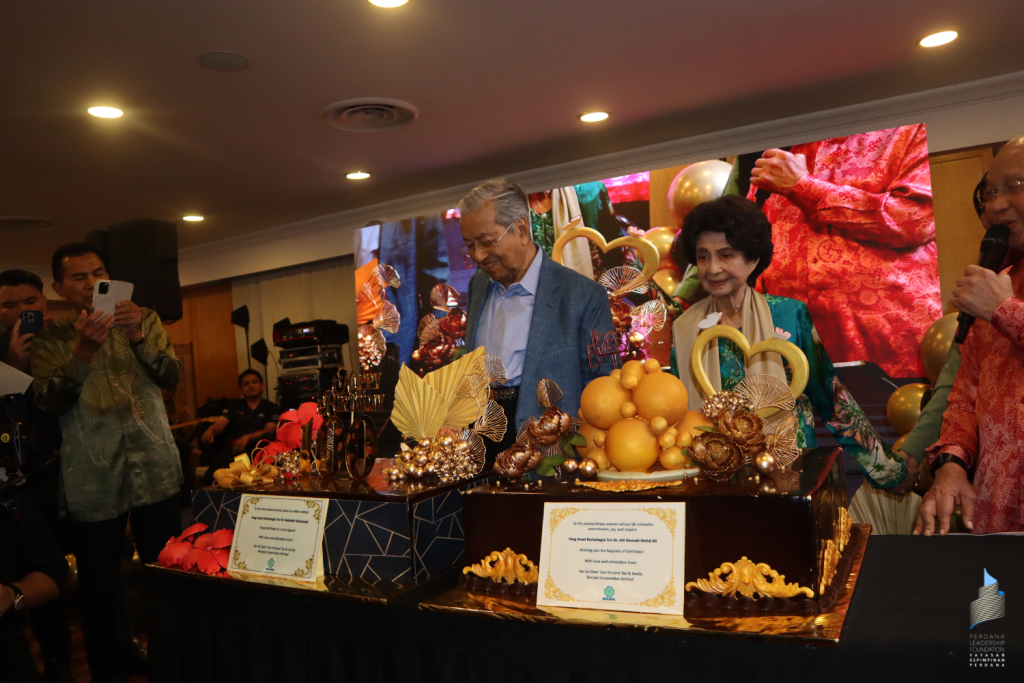 Before the event drew to a close, a tribute video to celebrate the wedding anniversary of Tun Dr Mahathir and Tun Dr Hasmah was screened, as 4th August would mark 69 years of their marriage. The celebration was capped by the Centennial Pulut Kuning and Birthday Cake Ceremony, where Tun Dr Mahathir Mohamad and Tun Dr Hasmah were presented with pulut kuning from Perdana Leadership Foundation and two beautiful birthday cakes from Berjaya Corporation.
