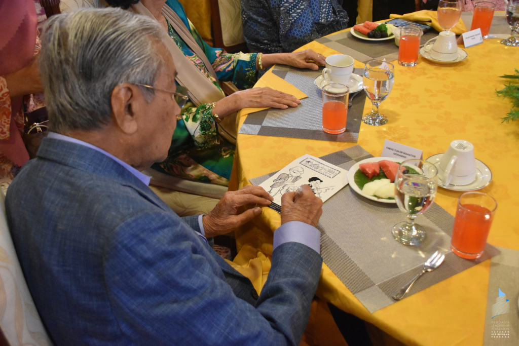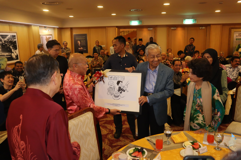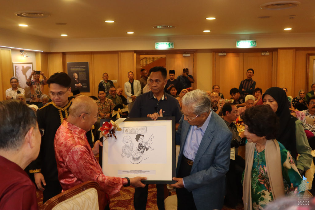 Tan Sri Azman Hashim presented a special gift on behalf of Perdana Leadership Foundation to Tun Dr Mahathir and Tun Dr Hasmah: A specially commissioned artwork to commemorate Tun’s 100th birthday on 10th July 2025, by Malaysia’s beloved cartoonist, Seniman Agung Datuk Lat. It beautifully captures the warmth, humour, and enduring partnership of Malaysia’s most iconic couple, as well as the legacy of a leader who has profoundly shaped the nation’s history.