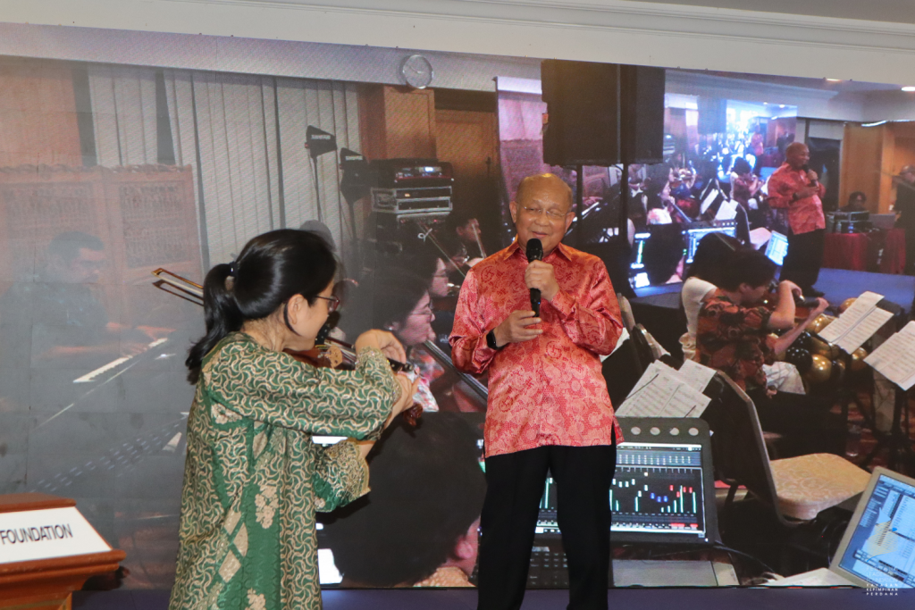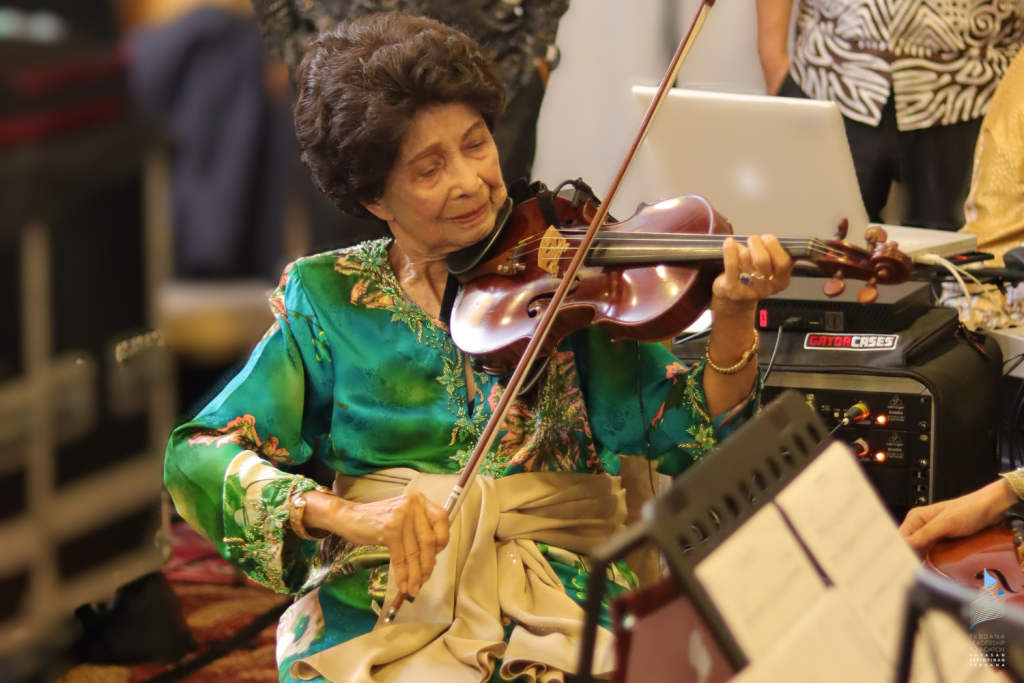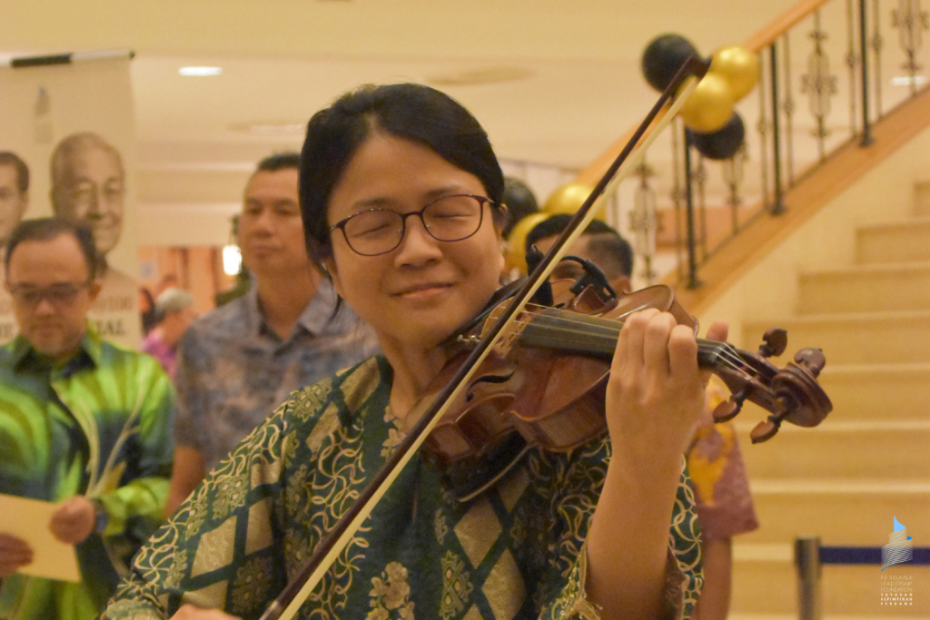 Tan Sri Azman Hashim lived up to his moniker, The Singing Banker, that evening, when he entertained the guests with eight of Tun’s favourite songs, his lively performance accompanied by the UMSO. The audience were also given a special treat when Tun Dr Hasmah performed Gubahanku and Bisikan Hati on her violin, and Datuk Nora Ariffin, thanks to founding trustee Tan Sri Vincent Tan, made a special appearance, belting out crowd favourites.