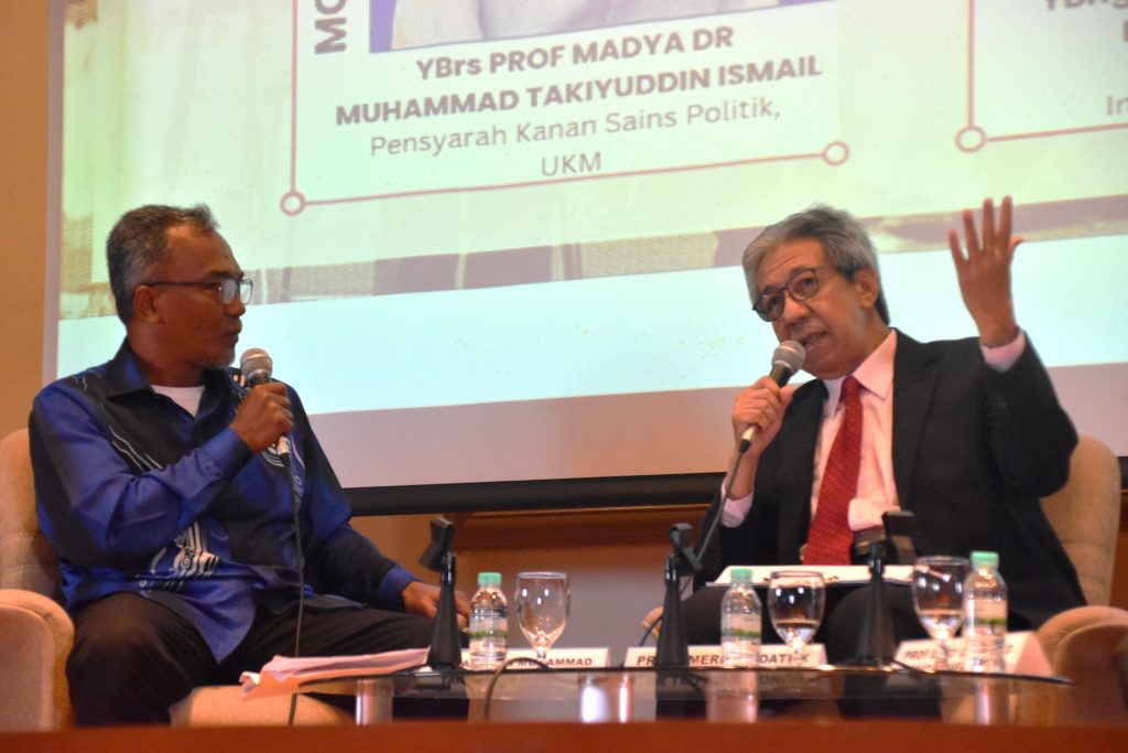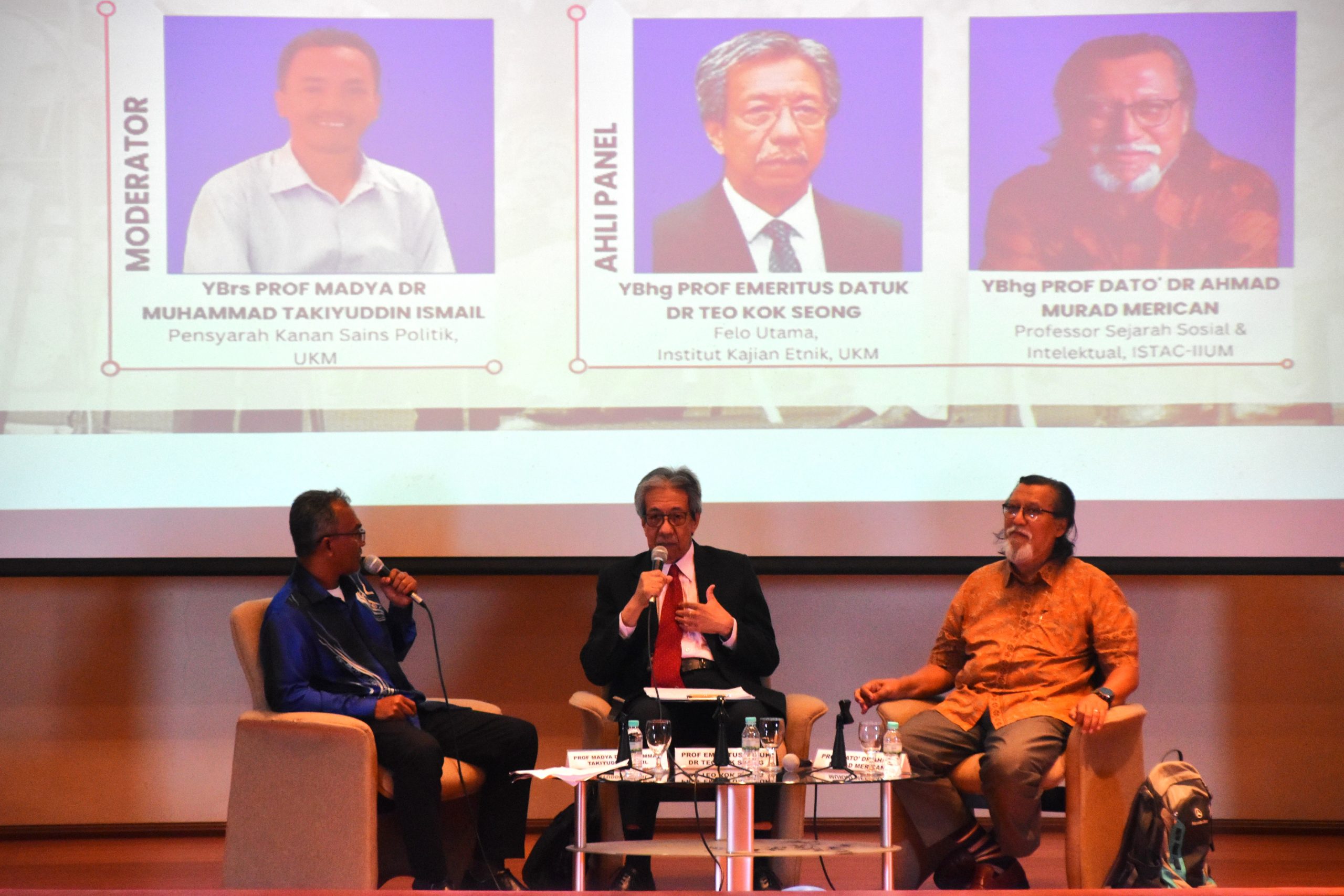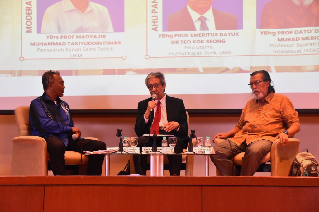 Program diteruskan dengan sesi panel yang menampilkan Prof Emeritus Datuk Dr Teo Kok Seong, Felo Utama, Institut Kajian Etnik, UKM, Prof Dato’ Dr Ahmad Murad Merican, Professor Sejarah Sosial dan Intelektual, ISTAC-IIUM dan Prof Madya Dr Muhammad Takiyuddin Ismail, Pensyarah Kanan Sains Politik, UKM selaku pemudahcara. Ahli panel membincangkan usaha kerajaan dalam merangkakan dasar dan pendekatan untuk membina negara Malaysia yang merdeka dan bersatu padu.