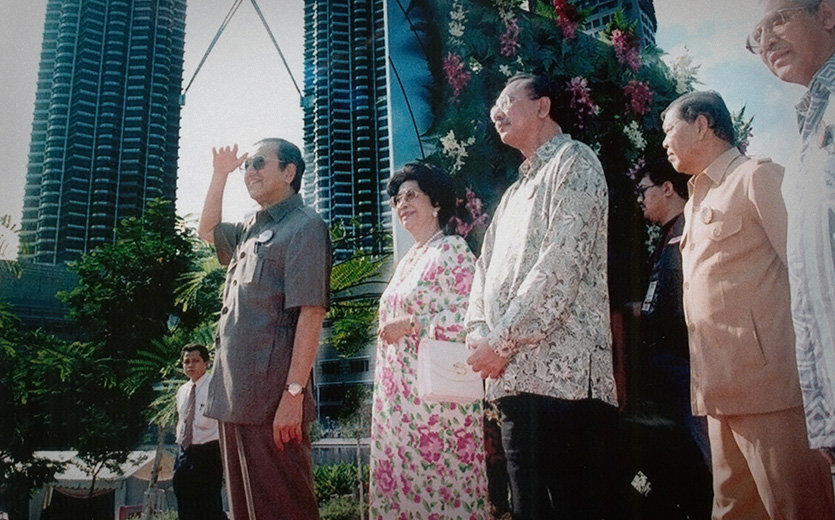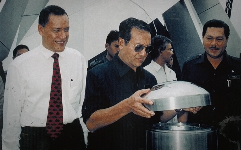 In 1976, Tun Dr Mahathir was made Deputy Prime Minister and two years later, he took on the post of Minister of Trade and Industry where he led several investment promotion missions overseas. In 1981, after Tun Hussein Onn stepped down as Prime Minister due to ill health, Tun Dr Mahathir Mohamad became UMNO’s President and Malaysia’s fourth Prime Minister. Under his leadership, Malaysia transformed from being an agricultural country to a modern, industrial nation. Tun emphasized a clean, efficient government, and launched the Bersih, Cekap & Amanah campaign (Clean, Efficient, & Trustworthy) to reduce corruption, promote efficiency, and nurture trust in the public service. Other innovations he introduced to the public administration system were to insist that government employees clock in and out each day as well as wear name tags.